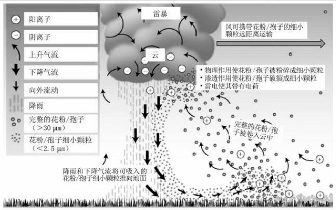 如果说日常的花粉会让特定过敏人群眼睛发红、流涕咳嗽,那么经过“雷暴”天气加工的细小花粉颗粒更加容易被人体呼吸道吸入,诱发哮喘急性发作。